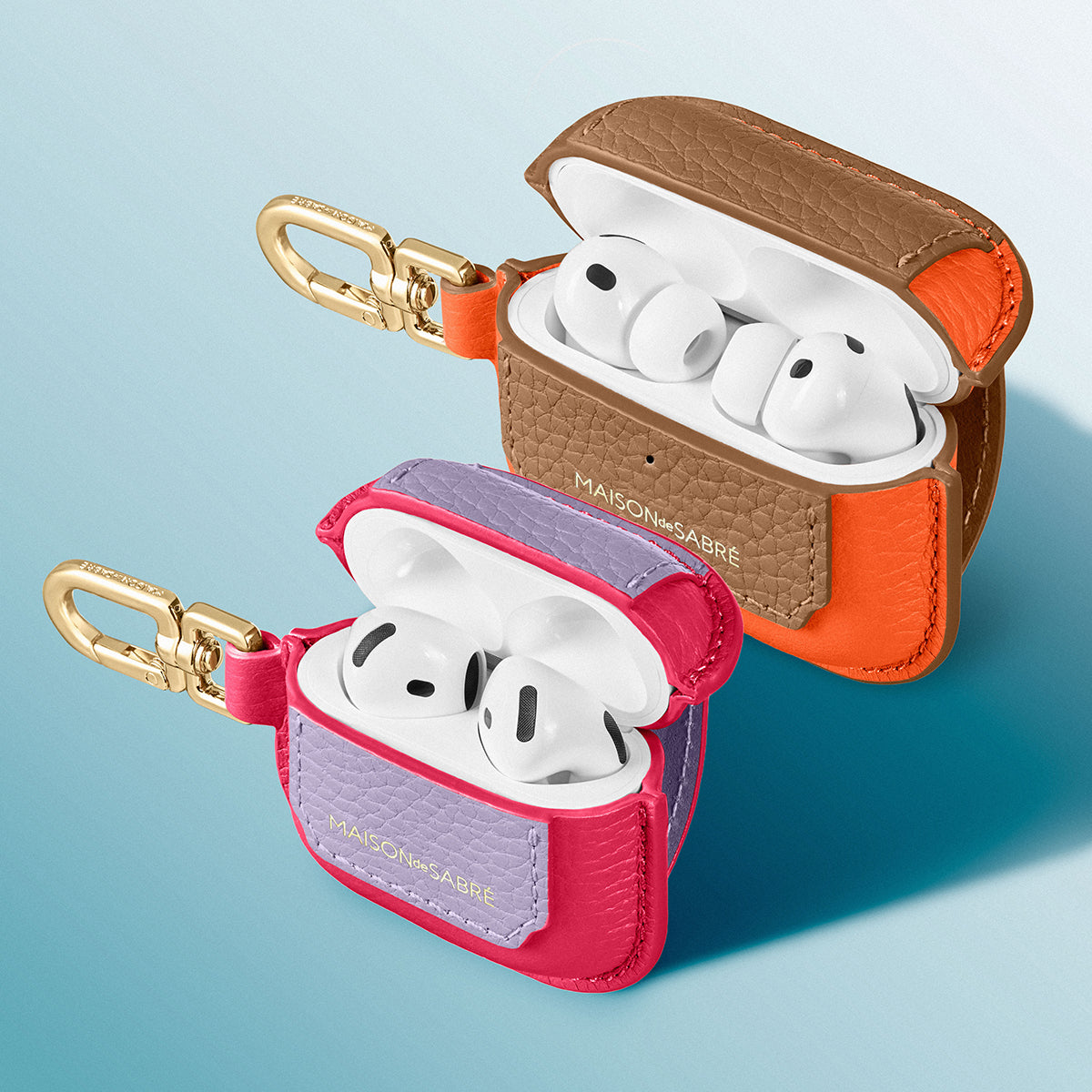 The world’s most secure AirPods guardian, engineered with resin-backed leather for enhanced drop protection. Utilising 100 per cent full-grain DriTan™ leather, the revolutionary case is expertly moulded to perfectly wrap your AirPods Pro 3 and AirPods 4 through meticulous proportions. Featuring a secure high-polish clip for seamless attachment to MAISON de SABRÉ carryalls and other accessories, precise cut-outs for accessible and visible charging compatibility, and a signature Sabré Curve leather flap that wraps from front to rear for heightened security. Arriving in playful dual-tone and timeless monochromatic colourways, the luxurious tech protector elevates while ensuring unwavering peace of mind on every journey.