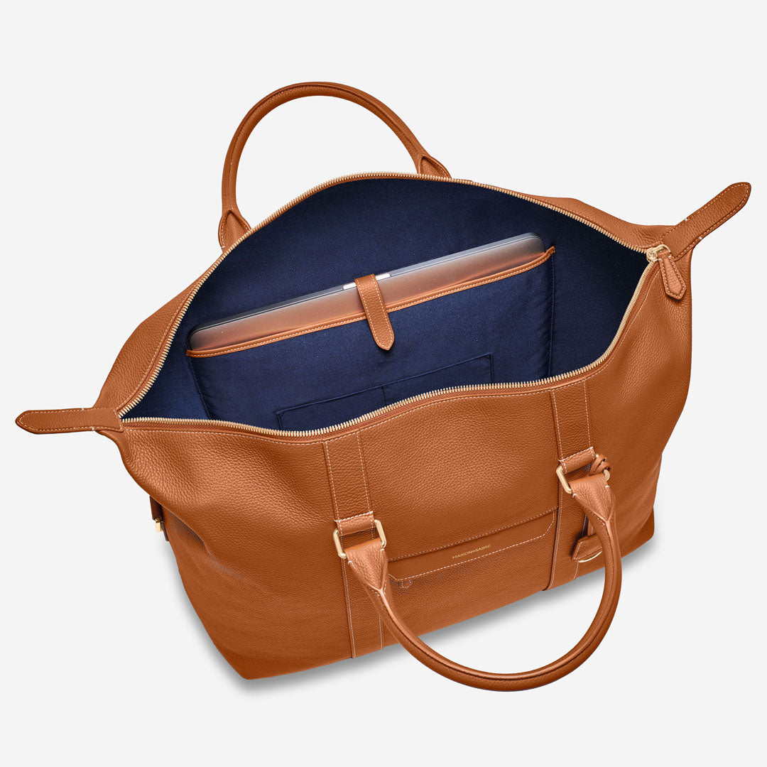Choose your own carriage with an ultra-comfortable detachable strap, leather handles and a trolley sleeve that slips over wheelable luggage. Off-shoulder, across-body, in-hand or secured to a larger suitcase — it pairs perfectly, always.