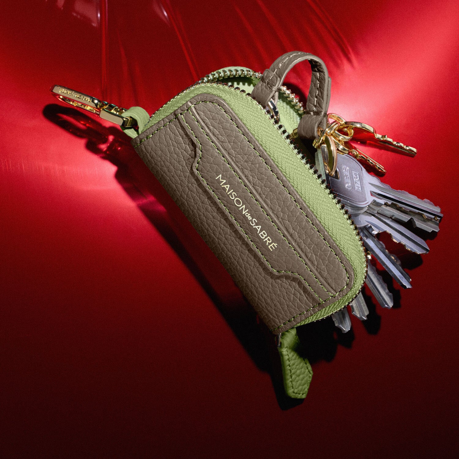 Your everyday essential’s most luxurious and functional defence against drops and scratches. Crafted from sustainable full-grain European leather, the sumptuous statement stows traditional and proximity keys, as well as fobs, through a full-length zipped case lined with smooth leather. Featuring a high-shine gold clip, the accessory organises your flagship Palais through secure internal attachment via the carryalls’ key leash, or externally via The SABREMOJI™ Charm Link. Your luxurious key companion also showcases acclaimed design codes with a sigmoid motif adorned across the front, while an internal key leash and keyring provide additional security wherever your calendar takes you.