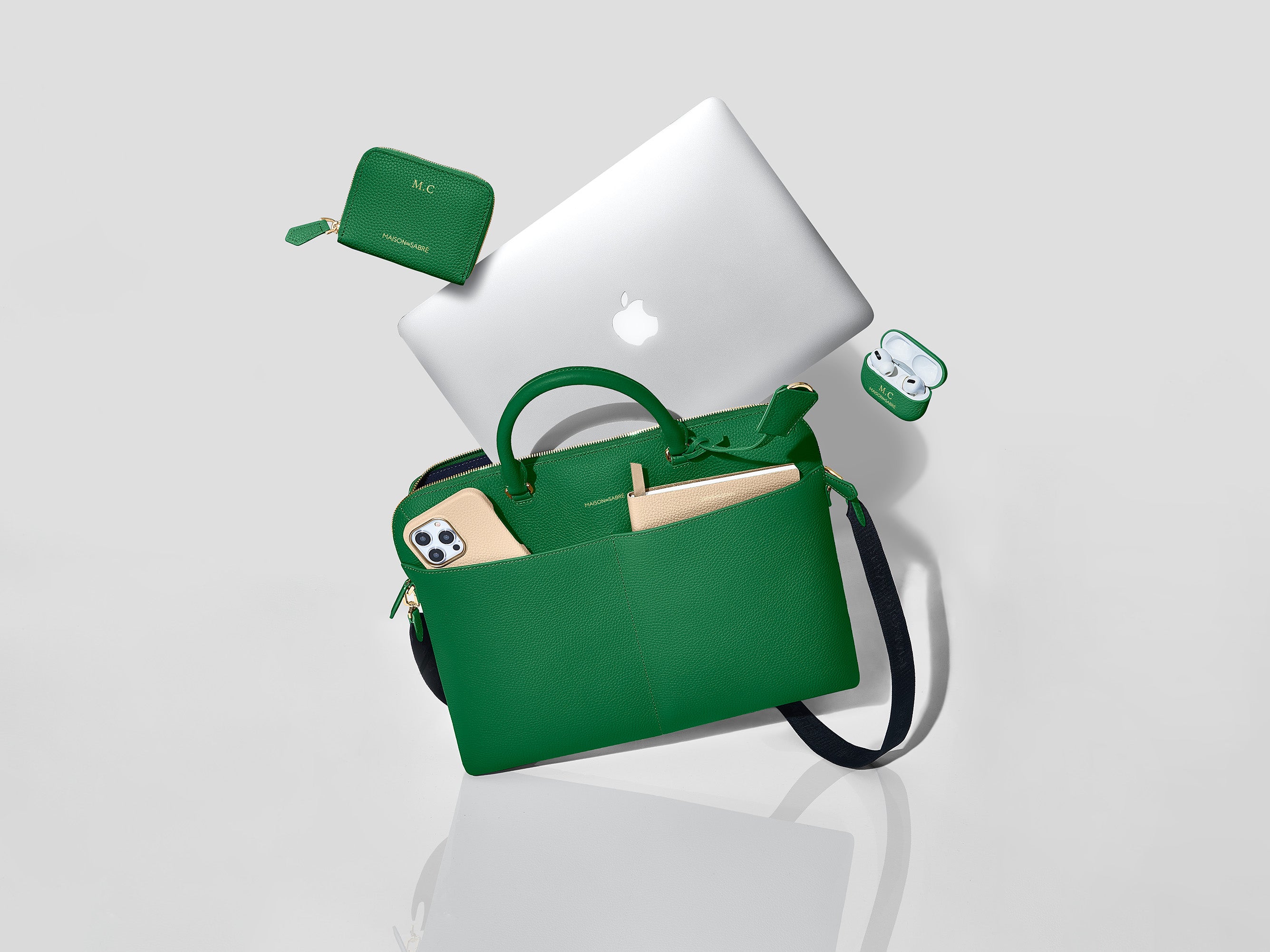 Signature MAISON de SABRÉ full-grain leather is exclusively sourced from Gold-Rated European tanneries, certified by the Leather Working Group. To learn more about the product’s remarkable hand feel and durability, visit our Materials page.
