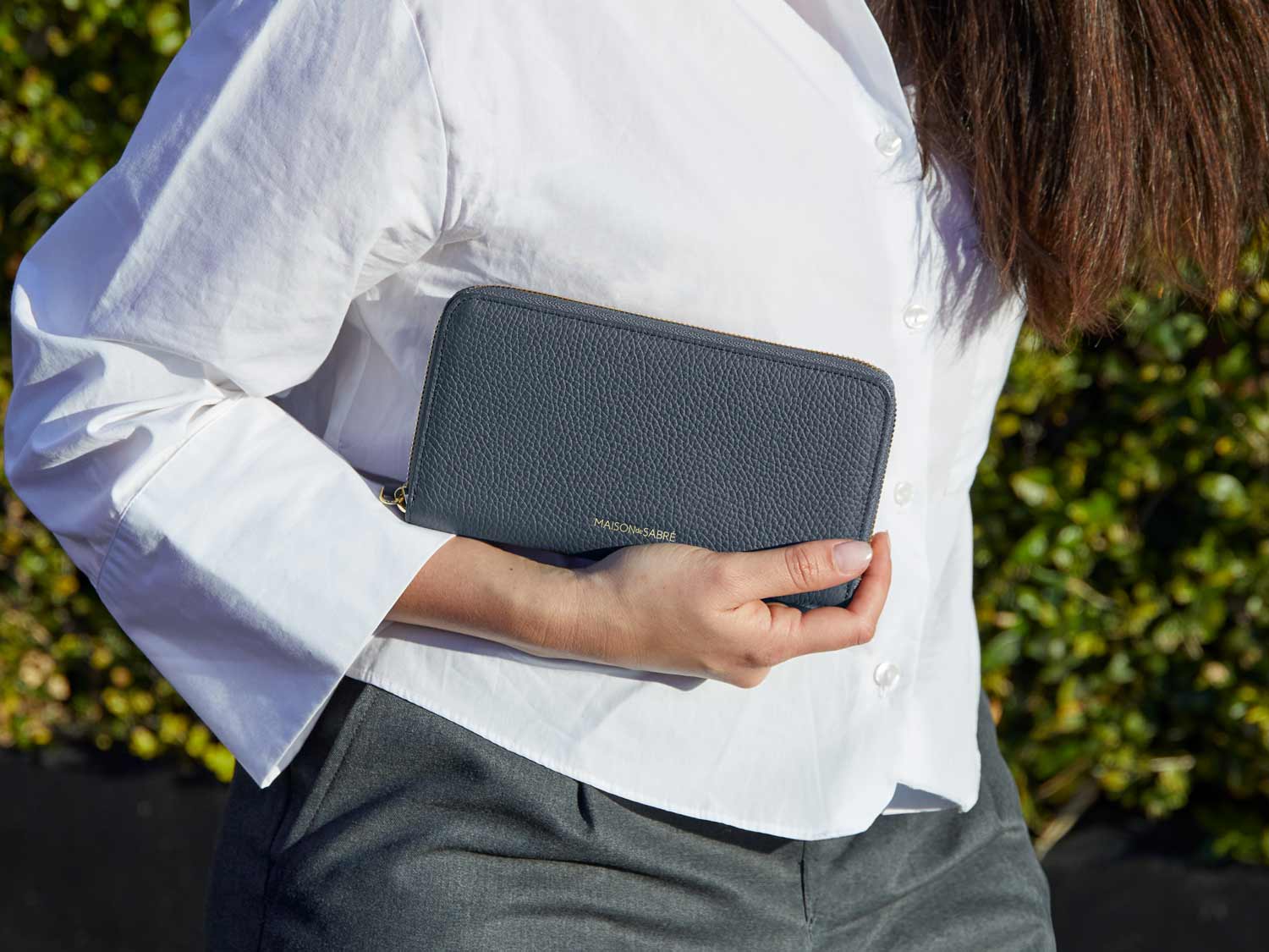 Signature MAISON de SABRÉ full-grain leather is exclusively sourced from Gold-Rated European tanneries, certified by the Leather Working Group. To learn more about the product’s remarkable hand feel and durability, visit our Materials page.