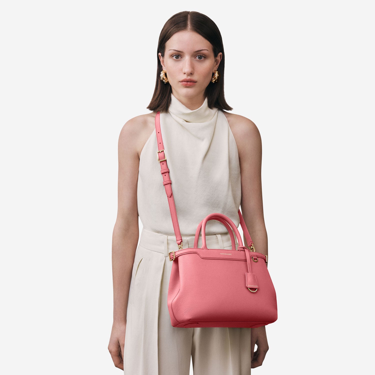 A flagship creation celebrating eight years of MAISON de SABRÉ craftsmanship, The Medium Palais embodies nine iconic brand codes handcrafted in supple calf leather that softens beautifully over time. Its fluid silhouette transports you seamlessly from brunch to gala, with adjustable belting, a secure bridge clip, rolled leather handles, a detachable crossbody strap, and contrast-hued natural suede leather lining exposed at the characteristic sideseam. A generous interior stows an iPhone Pro Max, pouches, a water bottle and daily essentials without compromising form. A SABRÉMOJI™ Charm Link allows for personalisation through signature Charms, while its elegant presence — a smaller sibling to The Large Palais — empowers every ensemble.