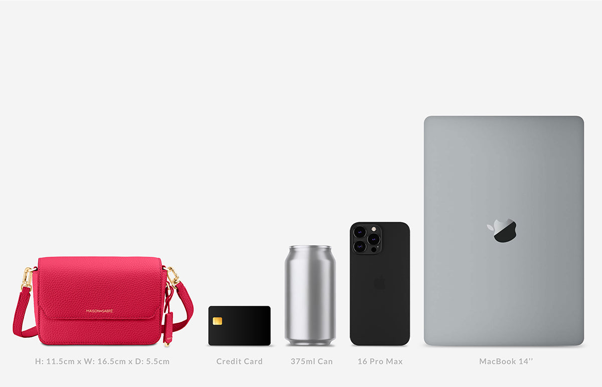 This is my favourite bag! I love the colour so much. The bag is small and perfect. I have an iPhone 16 pro max and I have the Hello Kitty case on and it is a bit of a tight fit to put in the bag but I’m hoping with use it stretches naturally. I’m so happy every time I use it.