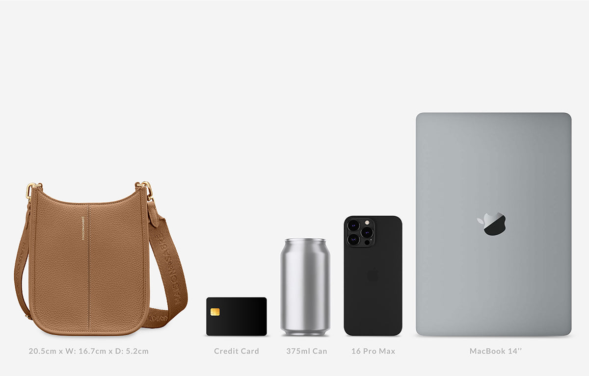 • Small silhouette designed to perfectly fit the iPhone, keys, wallet, AirPods and sunglasses