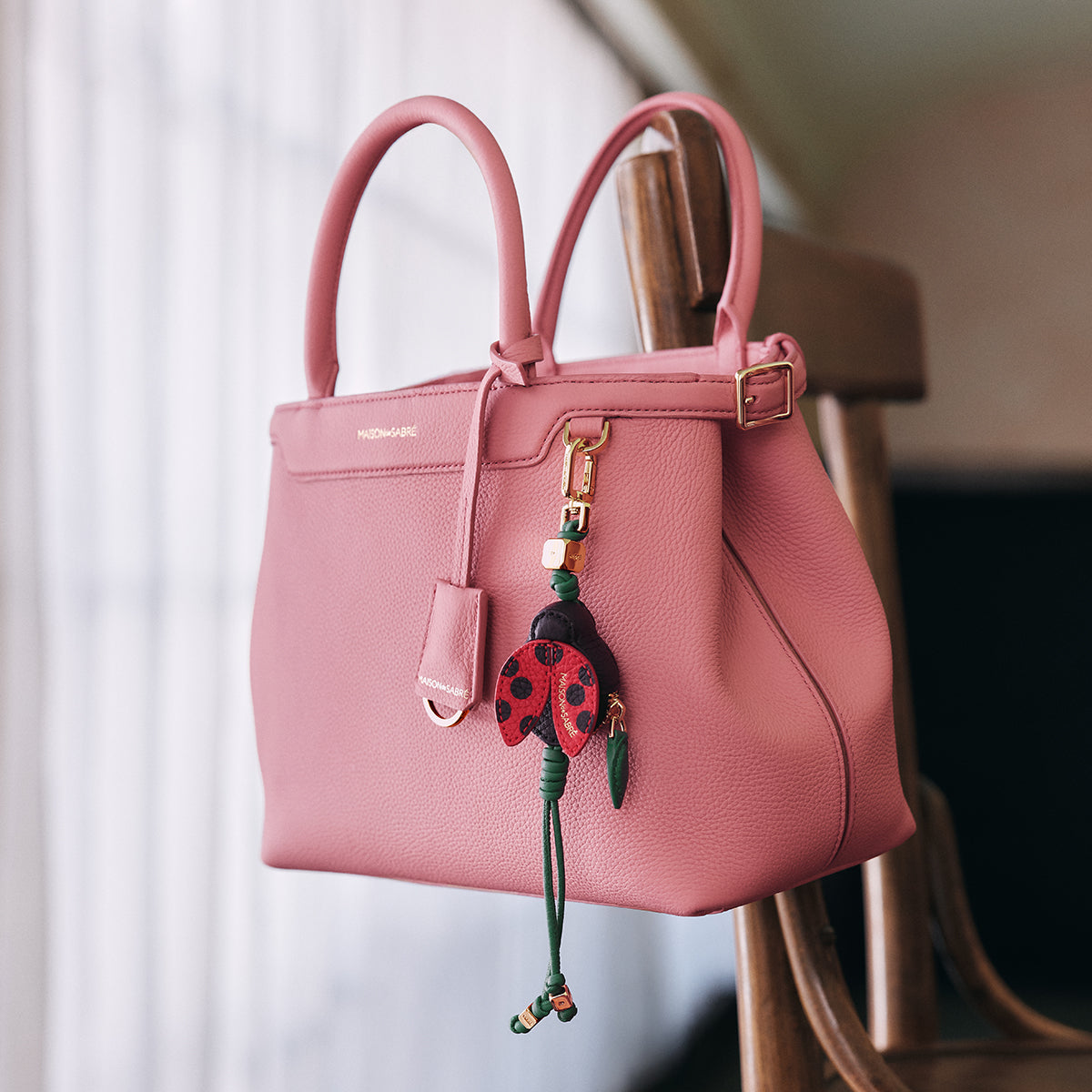 - High polished cuboid hardware featuring MAISON de SABRÉ marque