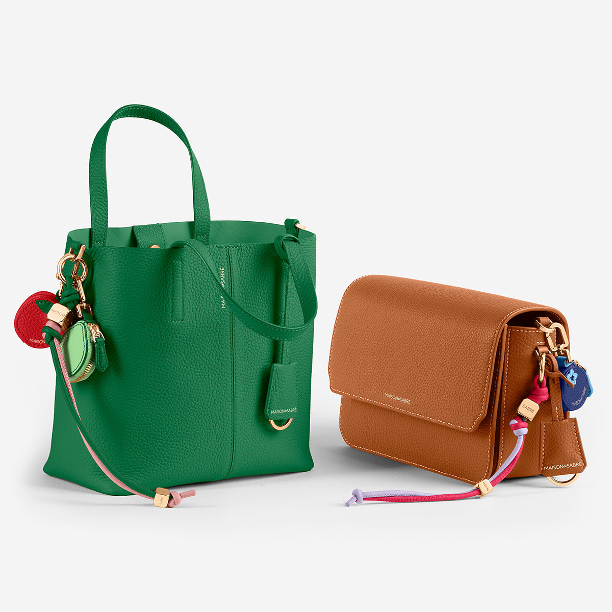 Extending our pursuit for a sustainable future, the Charm is meticulously crafted from upcycled offcuts of full-grain leather used to create the MAISON de SABRÉ Small Soft Tote.