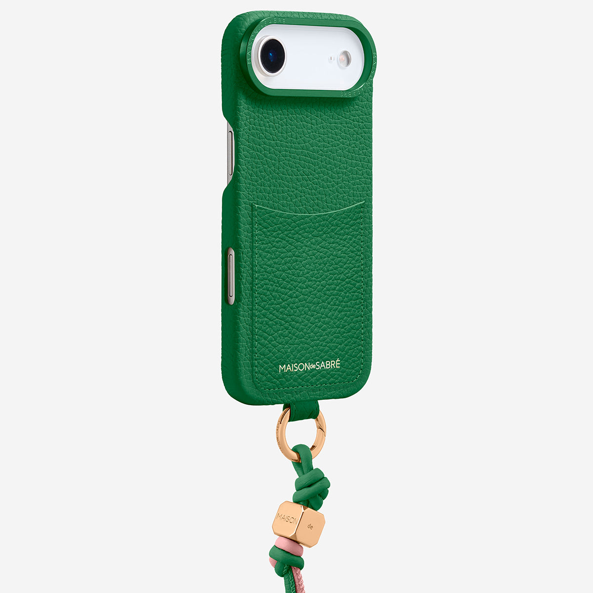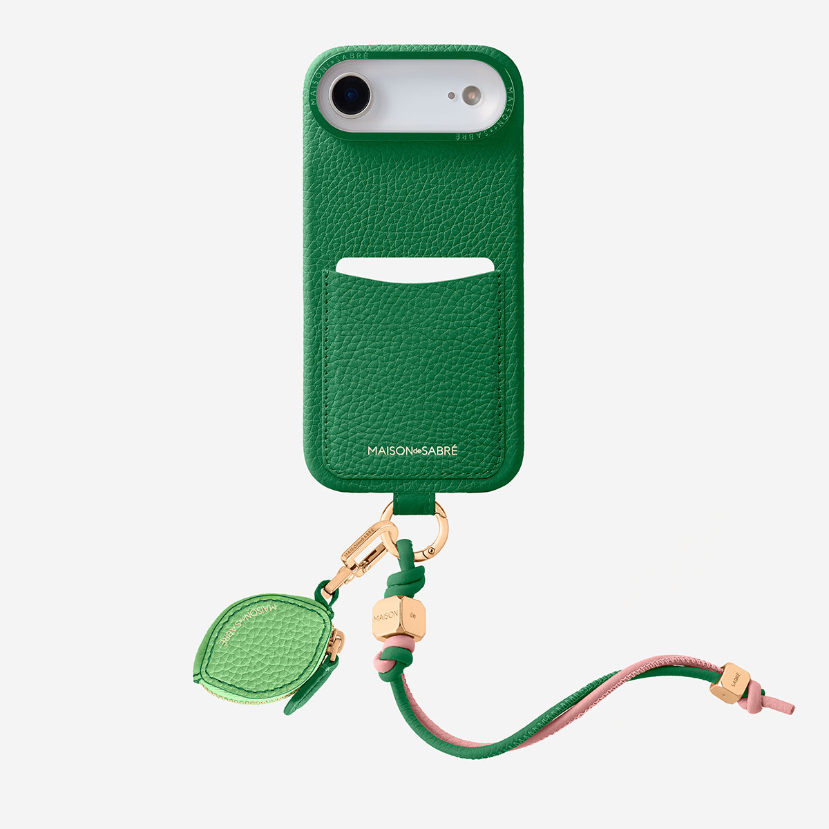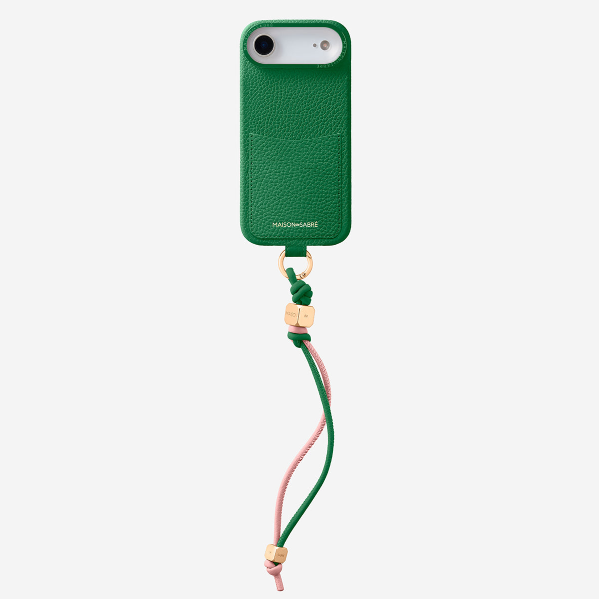 The most advanced personalisable iPhone 17 protection, engineered by the original all-leather case pioneers. Crafted from shock-absorbent German polycarbonate and wrapped in supple, sustainable DriTan™ full-grain leather, it securely safeguards your most essential companion through extraordinary design. The Wristlet Phone Case delivers unparalleled fracture resistance with 360-degree defence against drops and scratches. A 3D-milled pure aluminium camera guard extends 1mm beyond the lens, shielding it from impact. A detachable dual-tone leather cord showcases SABRÉMOJI™ Charms around the wrist, a rear card slot holds up to three priority cards, hand-sculptured curvature at button ports ensures effortless access and scratch-resistant microfibre lining provides an ultra-snug fit. More than protection, it’s iPhone 17 enhancement while displaying your bespoke Charm collection.