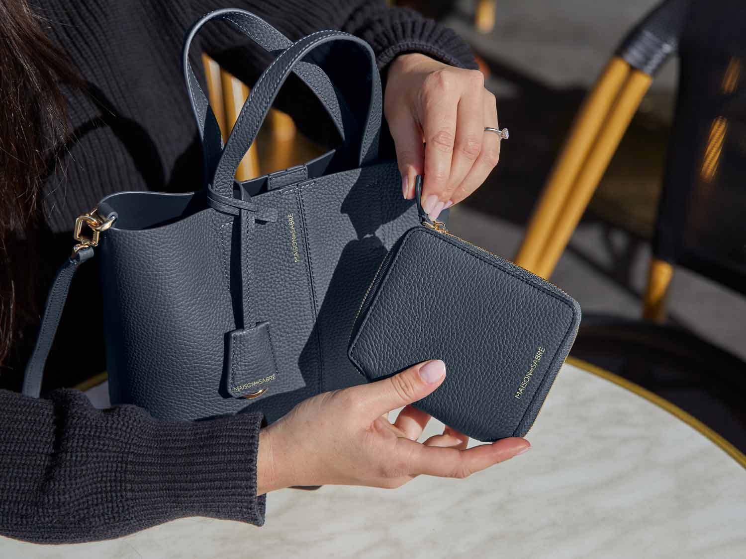 Signature MAISON de SABRÉ full-grain leather is exclusively sourced from Gold-Rated European tanneries, certified by the Leather Working Group. To learn more about the product’s remarkable hand feel and durability, visit our Materials page.